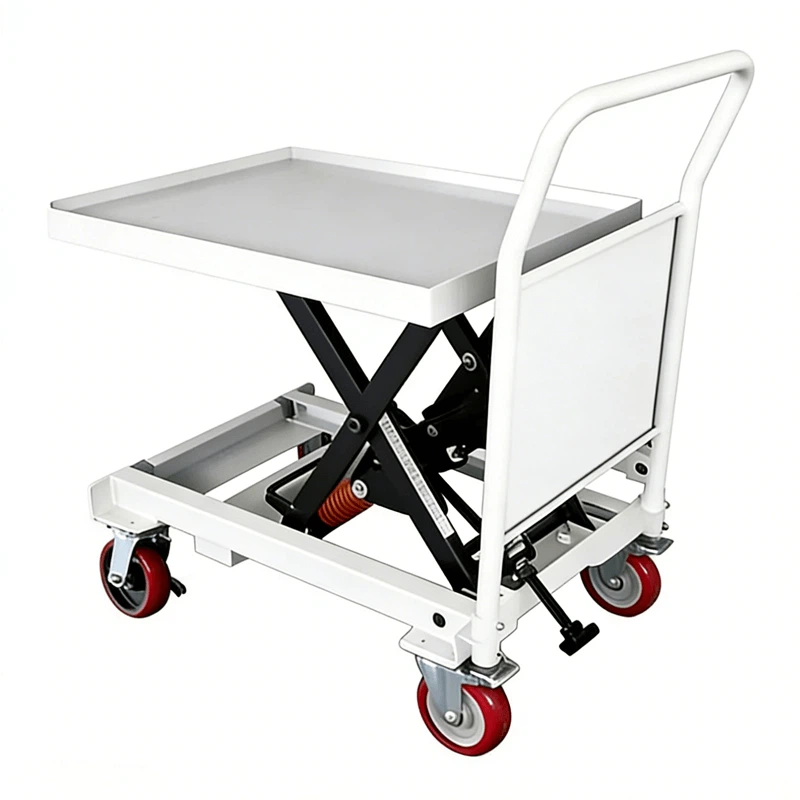 El tipo mejorado de mesa elevadora con palanca de resorte utiliza el tipo de resorte de compresión, que es diferente del tipo de resorte de tensión, y su capacidad de carga y vida útil se han reforzado. La carrocería en general está engrosada y reforzada, y las ruedas del piso utilizan ruedas de dureza reforzada, para que la carrocería pueda soportar cargas más pesadas. Es una buena opción para el taller de producción de cargas grandes y pesadas.